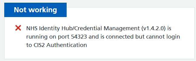 Hi David, what do you mean that it “authenticates locally”? Do you have an application talking directly to the smartcard? The error indicates that CIS2 Auth can’t communicate with the NHS apps on the device. Ensure that the port redirection service is running as well as the agent application/credential management.